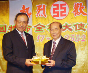 客家总会首长拜访陈碧桃女士 邓干勋向陈碧桃呈送永远名誉会长请任书