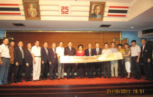 泰國客家八社團在泰國客家總會的率領下赴國務院拜謁穎拉總理并呈獻300萬銖救災善款