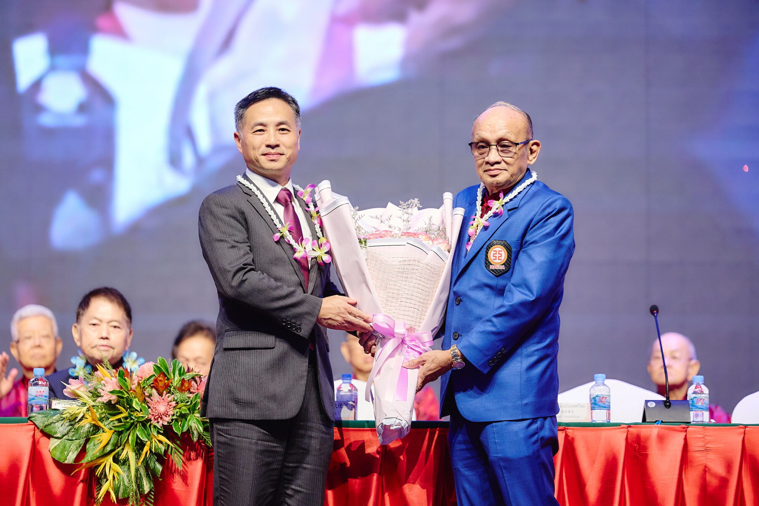恭請芭堤雅市長吳烈臣閣下致詞時表示:芭堤雅能成為本屆懇親大會舉辦地,是榮耀之舉。我謹代表芭堤雅市政府與市民,熱烈歡迎全泰客家鄉親的蒞臨。客家人勤勞、團結、守義,長期以來為泰國經濟與社會發展作出重要貢獻。今天,來自全國各地的客家同鄉齊聚芭堤雅,不僅是親情的相聚,更是文化的傳承與心靈的交流。