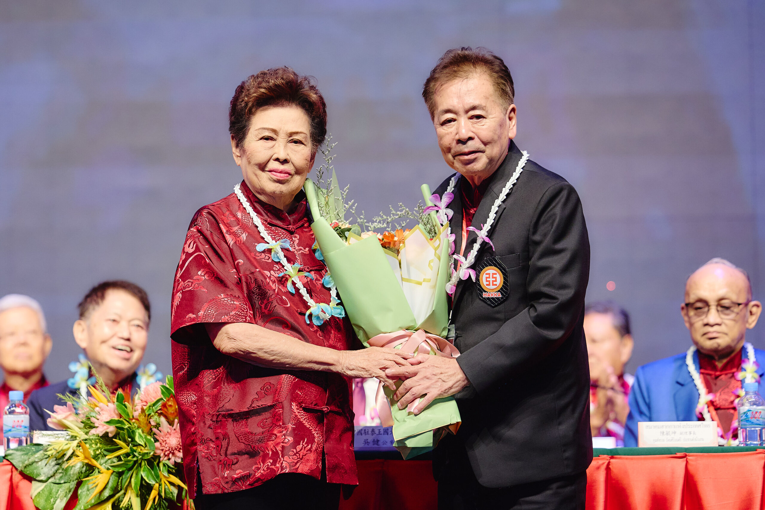 大會主席執行主席陳毓坤贈花予公參吳健閣下