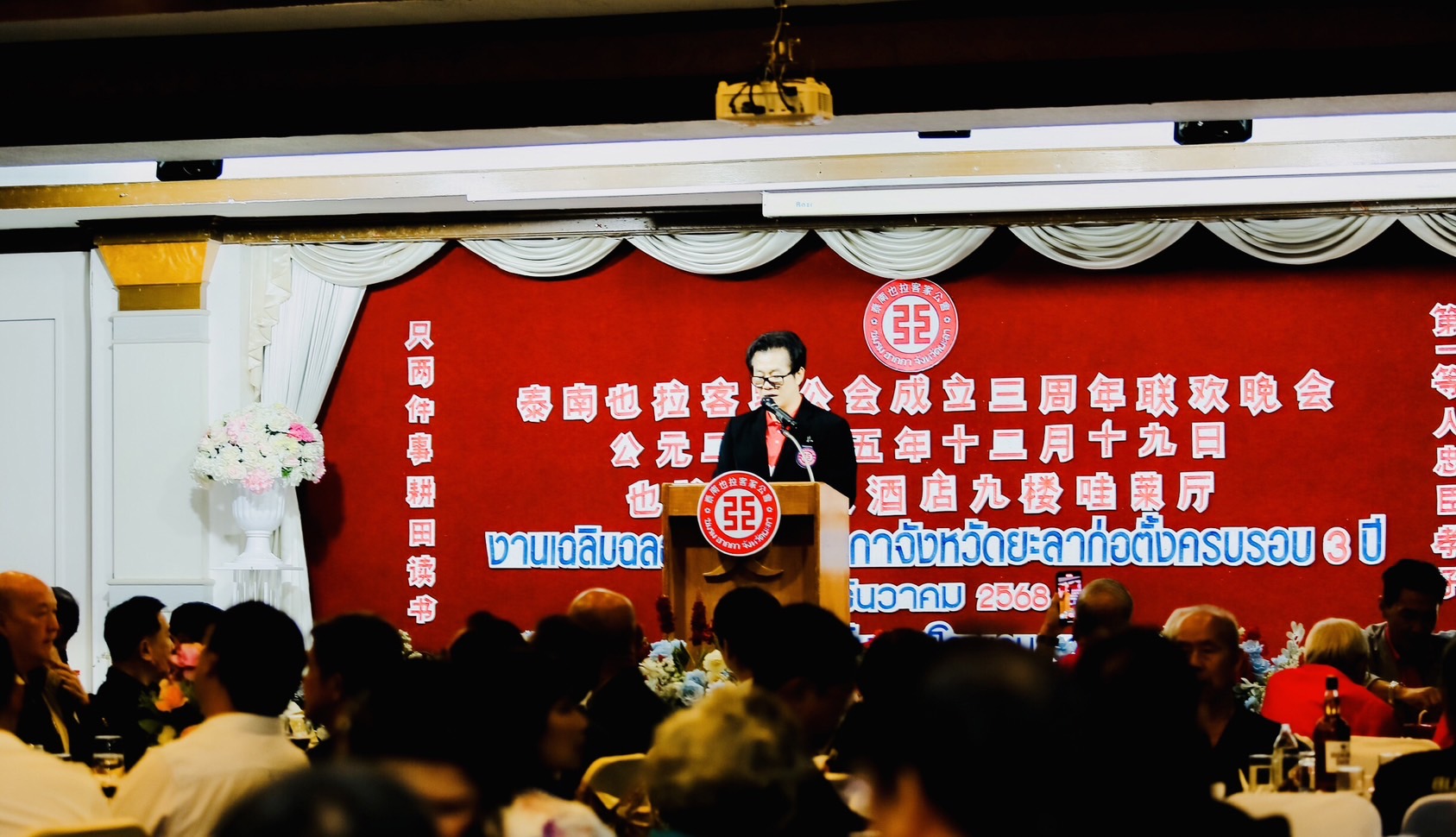 泰南也拉客家公會成立三周年聯歡晚會,於二零二五年 十二月 十九日十八點至二十一點,在也拉拉瑪大酒店哇萊廳九樓隆重舉行。晚會由也拉客家公會曾繁光會長以及諸理事齊心合力舉辦。本年晚會承蒙泰國客家總會首長的厚愛與青睞。泰國客總理事長黃建華博士親自帶領准理事長:盧平光、副理事長:盧來福、周正華與夫人叻沙琳、副秘書長:盧龍光、財政:盧繼良與青年委員古瑞哲出席本次晚會。