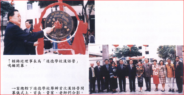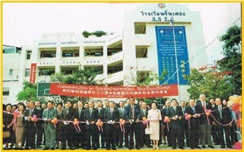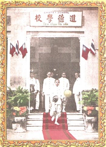 佛历二四七零年三月二十日泰七世皇巴差缔朴陛下,命驾参观本京,明德、育民、培英及进德四华校,选择在进德宽大的礼堂为总训词地点,颁赐纶音;是日各属华校董事局齐集本校恭聆圣论,是本校之殊荣。二四七四年,经济不景气,交由客属会所接办,负责全部开支。其时特成立“校务委员会”主其事,推举伍君佐南及叶君云舫担任正副委员长。 佛历二四八二年九月发生战事,泰政府颁令收回全泰国各华校执照,不准教授中文。次年公推曾任泰邮政局长之邹怀元为校主兼司理,易名“拍柿学校”。迨至二四八八年八月日军投降。中国为战胜国之一,适时正副主席熊君均灵与熊君道南急求复校,乃召开紧急会议遴选吾属热心教育人士八十七人组织“复校委员会”着手申请,以安南巷原校址复办,获准易名为“曼谷进德公学”。招生公布后,侨胞们以中国为战胜国,一时报名者蜂拥而至,学习中文者众,造成校舍无法容纳,故经会议通过,另租赁素里翁路一座洋楼及一排单层排屋增设为第二校,定名为“暹京进德分校”,聘请汪君了侬为一、二两校校长、主持校政,培训师资。次年增购相连店宇四间,改建二层木屋一排增辟课室八间,解决了教育问题,使中华文化在异邦发放光彩。 翌年学校右侧一排木屋九间,占地一百六十三平方哇出售,公推伍总理竹林代本会洽购及向土地厅过名登记。随即组织扩建进德公学委员会筹备进行,新校舍绘制蓝图公开投标。佛历二四九五年二月九日恭请教育部长銮蓬裕提上将主持奠基礼,鸠共兴建,由郭君实秋任理事长熊君道南任副理事长。佛历二四九六年客总举行常年会员大会,第十三届理监会因变卖叻抛地区公产之过失,违反会章致被倒阁,另改选第十四届理监事会,结果由伍君东白再度任理事长,丘细见为副理事长,急速筹款完成建筑;不数月巍峨之四层楼新校舍乃告竣工,楼下及二楼辟为课室十六间,第三、四层 |